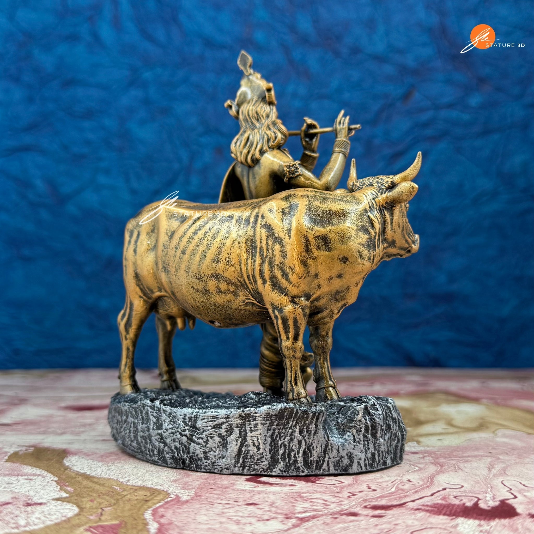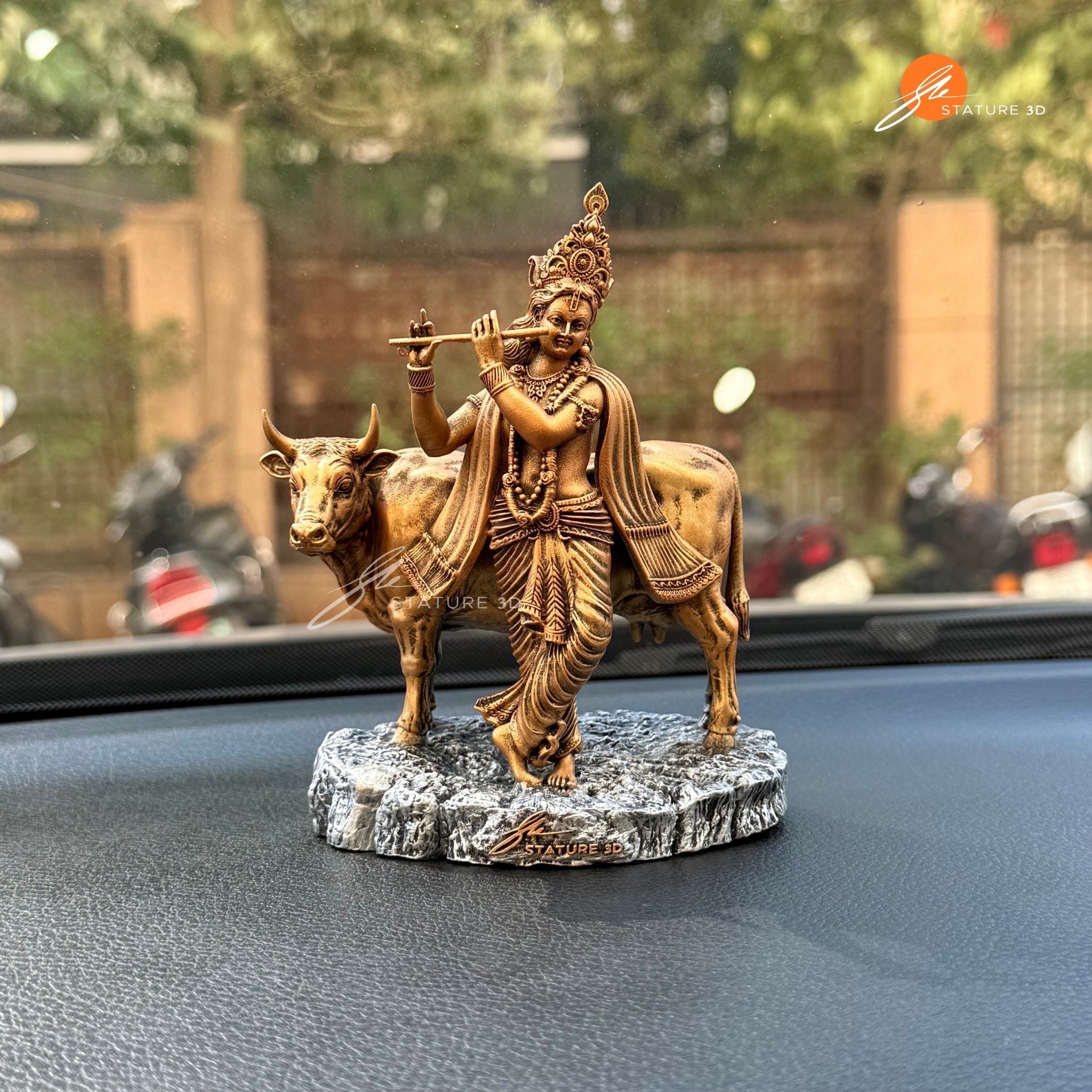 Krishna car idol, car dashboard idol, Krishna and cow statue, dashboard decoration, spiritual car decor, divine car idol, 3D Krishna statue, blessings for every journey, Krishna and cow dashboard idol, safe journey blessings.
